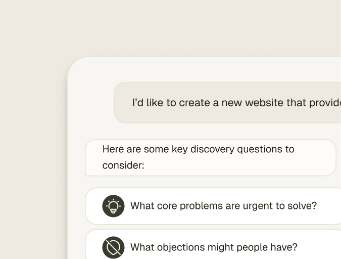 Share what you want to explore — a product idea, concept, positioning, or problem space. Frank helps structure the right discovery questions.